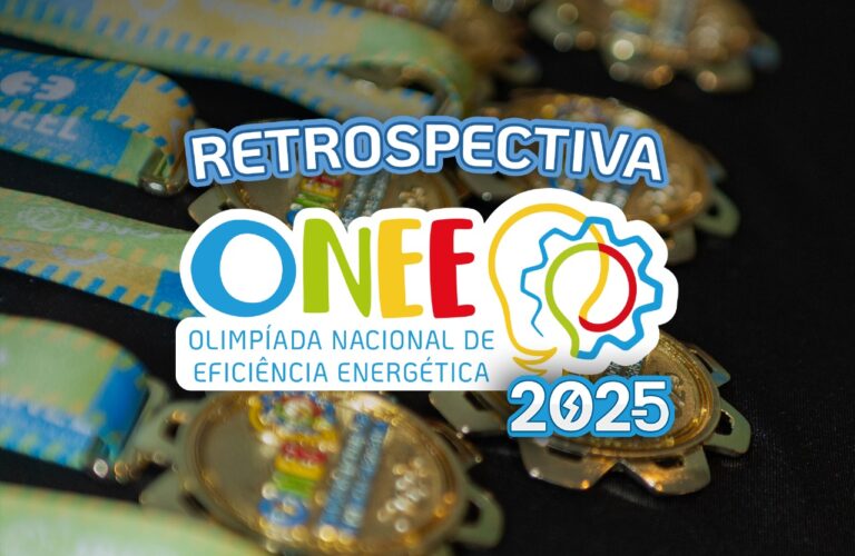 A retrospectiva da ONEE 2025 relembra as principais etapas da olimpíada: inscrições, Blitz de Eficiência Energética, circuitos de estudo, Lives Energéticas, jornada gamificada, anúncio de medalhistas e a Semana Olímpica em Brasília.